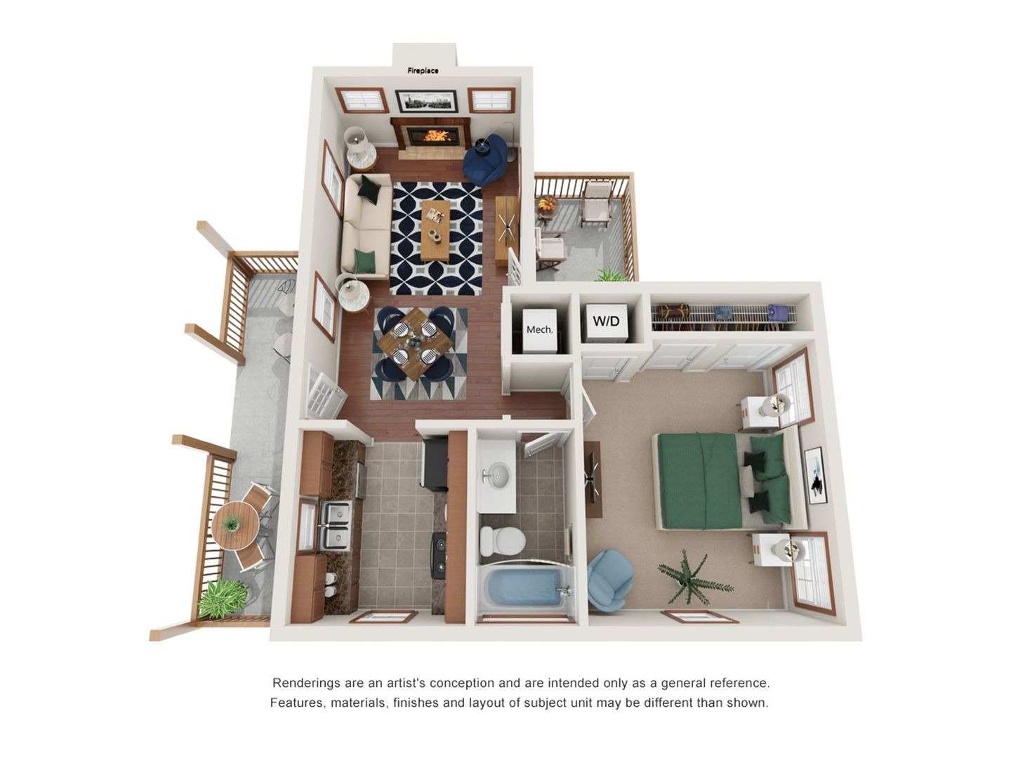 This cottage-style apartment is one of the coziest homes you’ll find around. It features wood floors in the living and dining room, ceramic tile in the kitchen and bathroom, and berber carpet in the bedroom. This apartment also includes stainless steel appliances, a built-in wine rack, a washer/dryer, lighted ceiling fans, many windows for ample natural light, and a private covered porch or balcony, depending on whether you’re on the first or second floor.